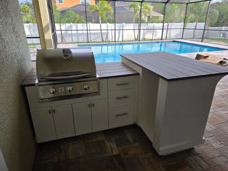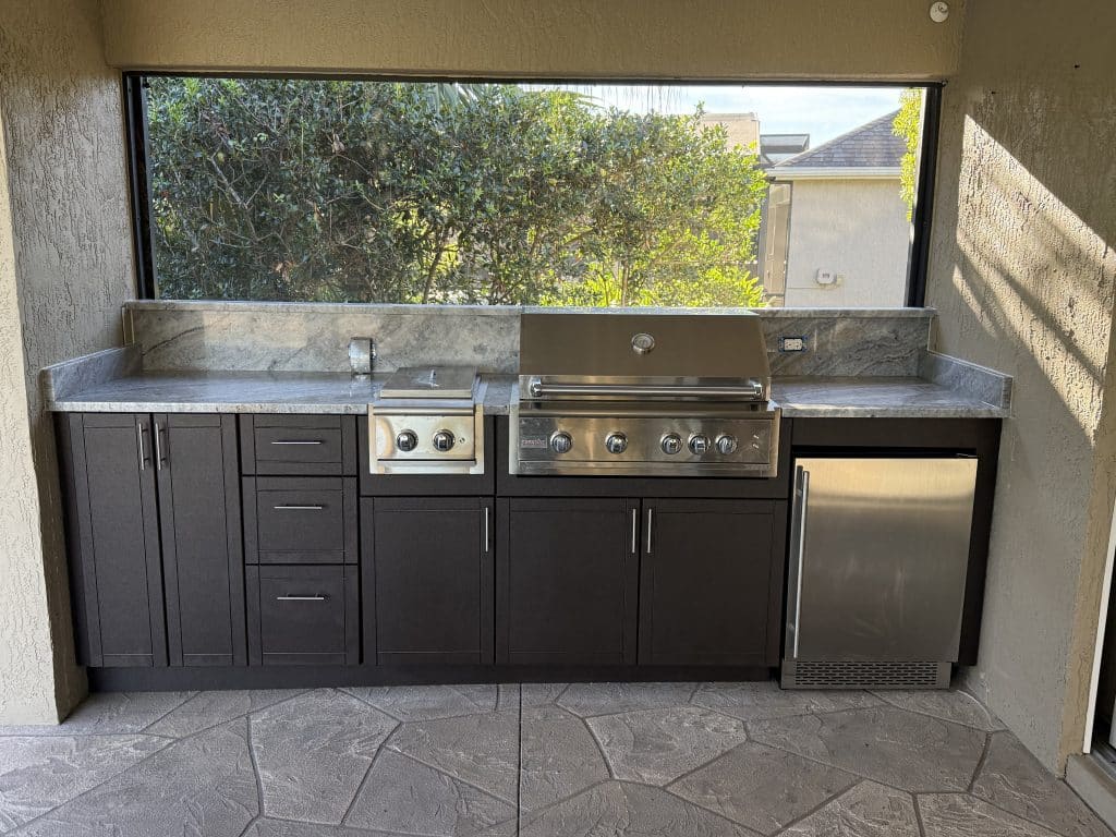 Kissimmee outdoor kitchens usually have to work hard. Many backyards are built around family gatherings, pool use, and frequent entertaining, so the cabinet plan needs to stay durable and practical without wasting valuable patio footage.